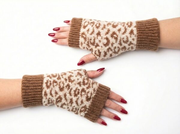 Leopar Eldiven, tamamen doğal yün ipliklerle, hiçbir katkı maddesi kullanılmadan el emeğiyle üretilmiştir. Leopar deseninden esinlenen özgün dokusu sayesinde klasik kış aksesuarlarının ötesinde modern ve dikkat çekici bir görünüm sunar.