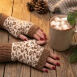 Kadın Eldiven Kışlık / Yumuşak Yünlü Örgü / Leopar Desenli