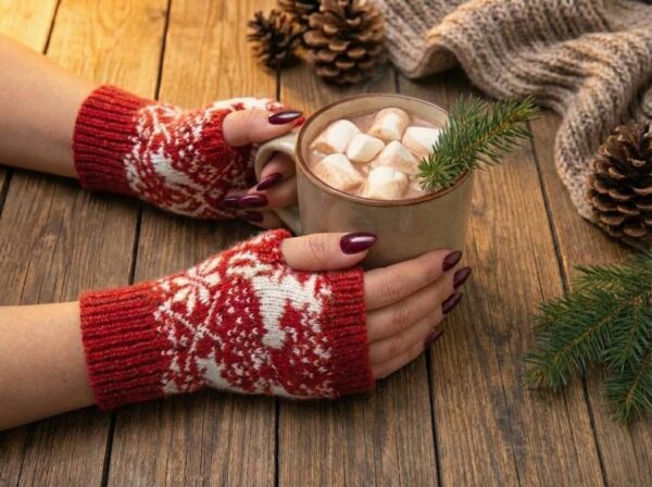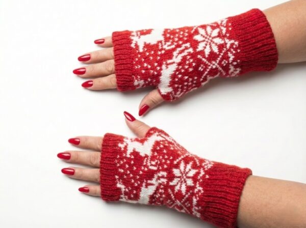 Kadın Eldiven Kışlık / Yumuşak Yünlü Örgü / Yeni Yıl Desenli